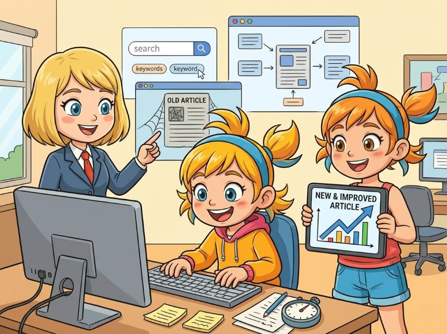「Webマーケティング」や「集客」といった、時代が変わってもお客様の悩みの根本が変わらない普遍的なテーマの記事があります。こういった記事には、時代の変化に合わせて新しい手法を追記していきます。例えば、数年前に書いた基礎記事に、近年主流になっている「ショート動画の活用法」といった新しい情報を付け加えます。これにより、記事の価値が現代版にアップデートされ、検索順位を再び押し上げることができます。